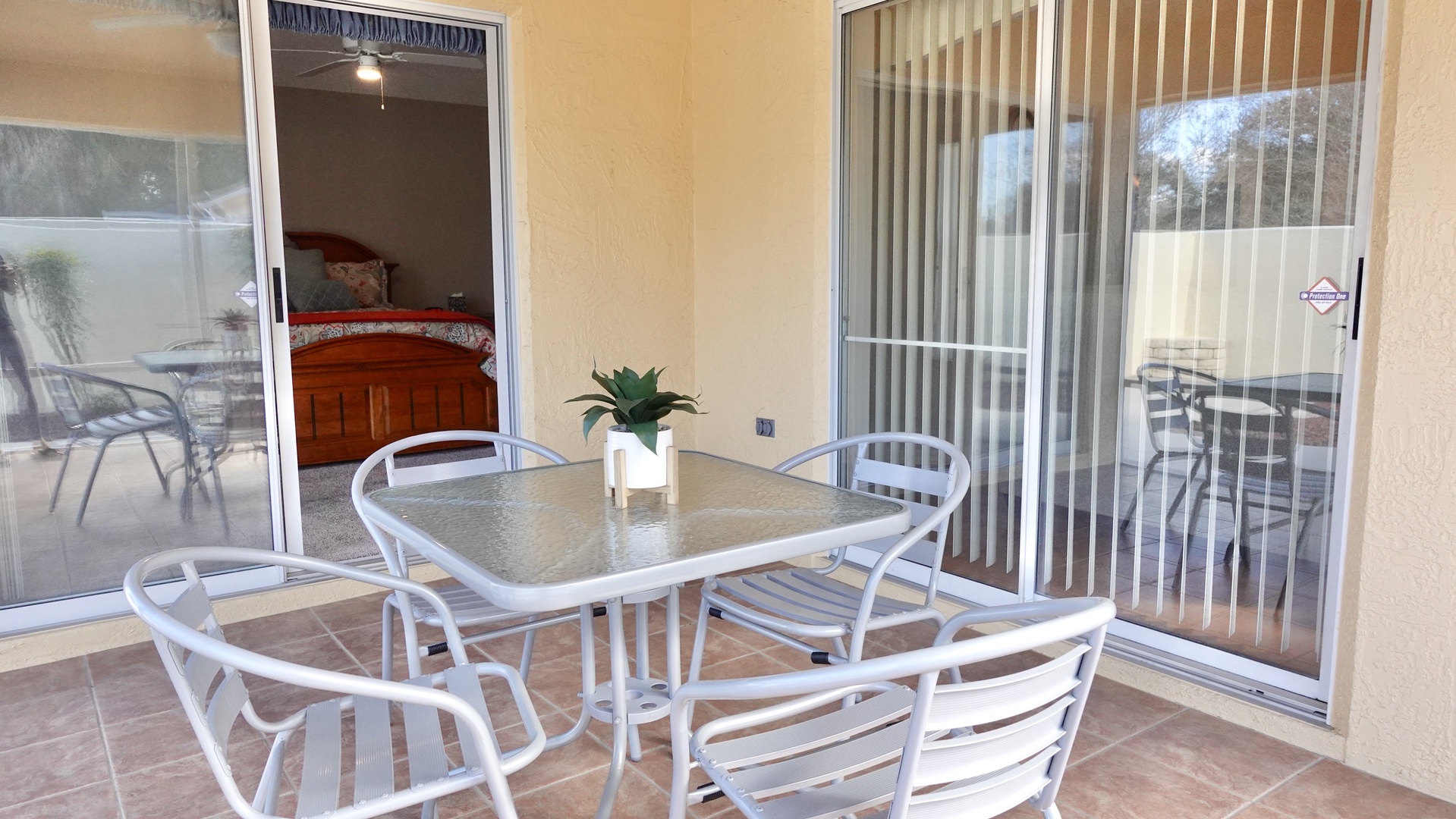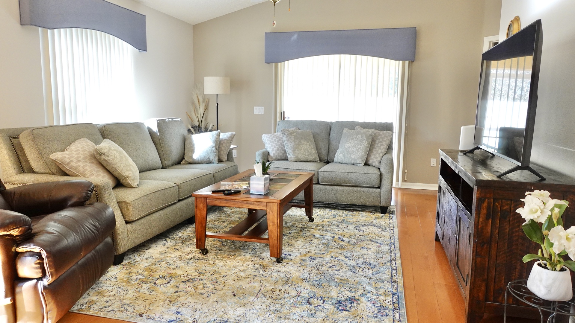 Welcome to this beautifully appointed 2-bedroom, 2-bath Courtyard Villa, offering comfort, privacy, and thoughtful upgrades throughout. The open living area features soaring cathedral ceilings and an Apollo TV, creating a bright and inviting space to relax after a day of activities.