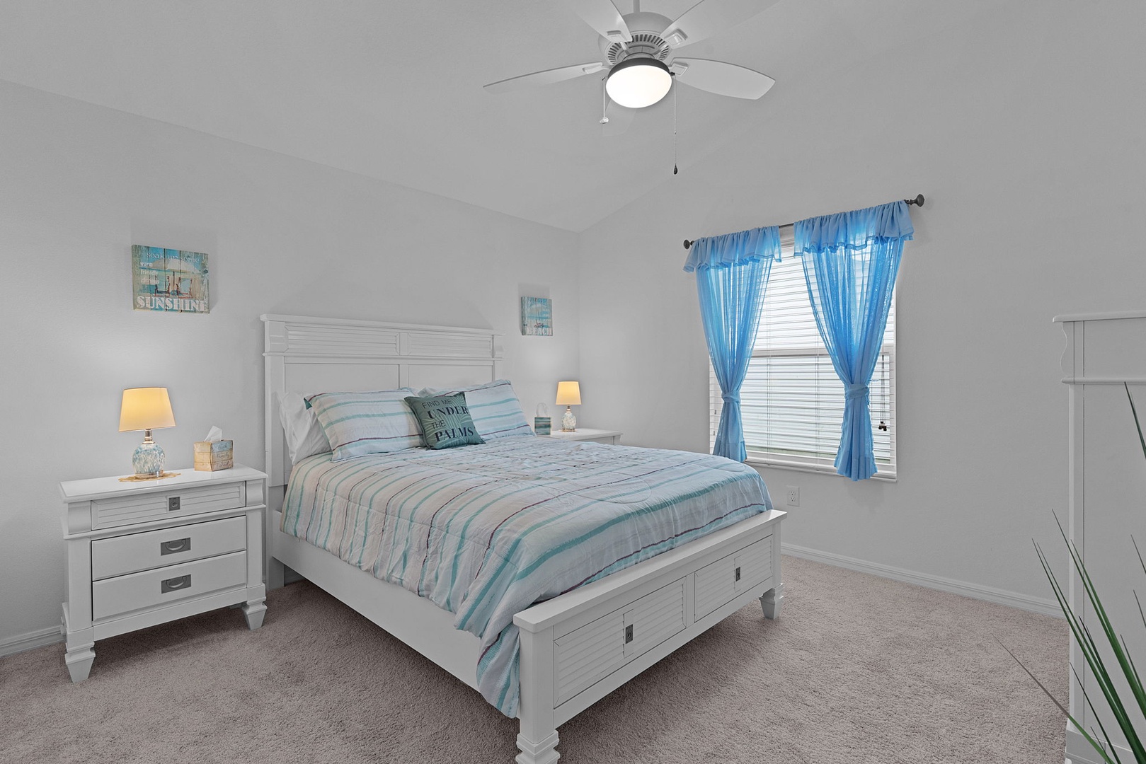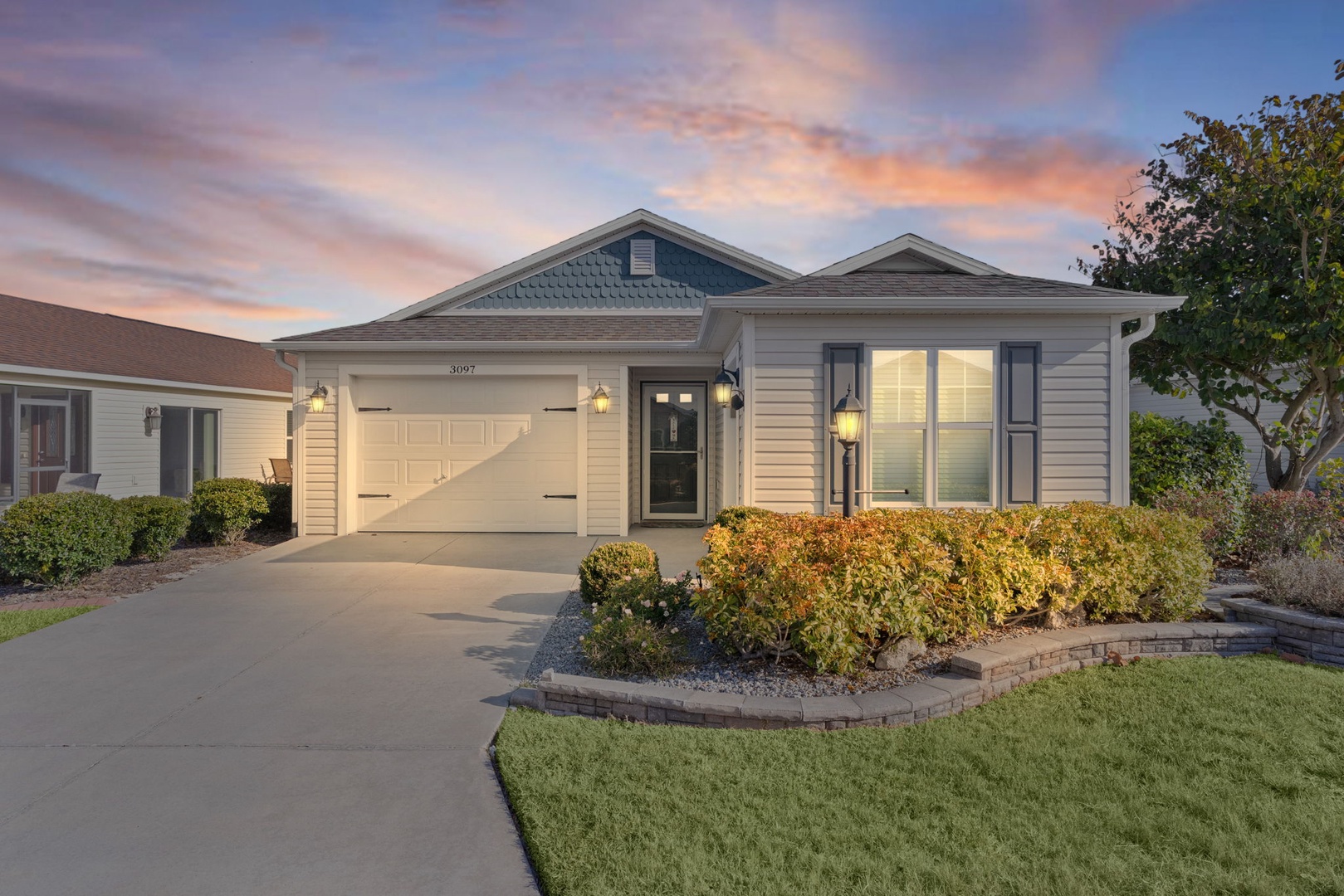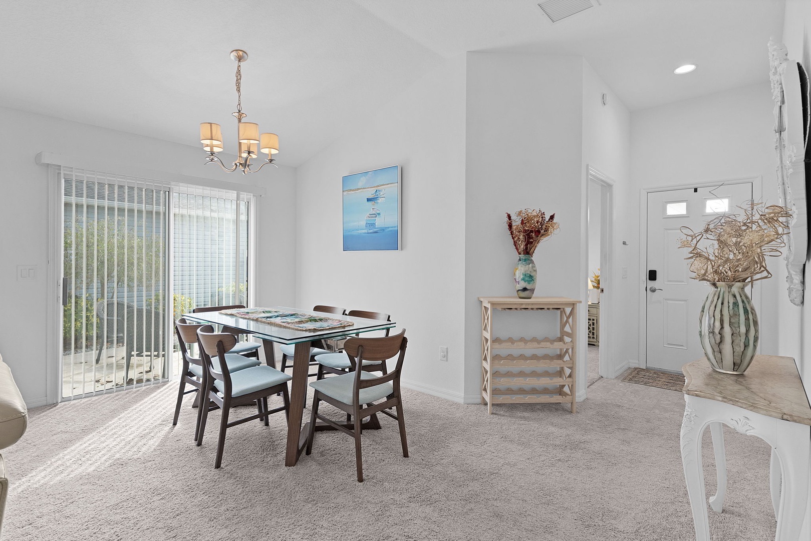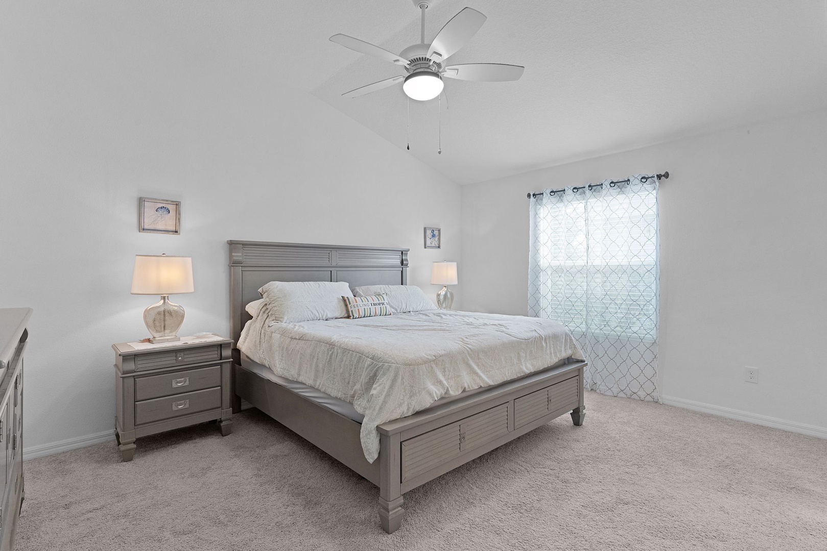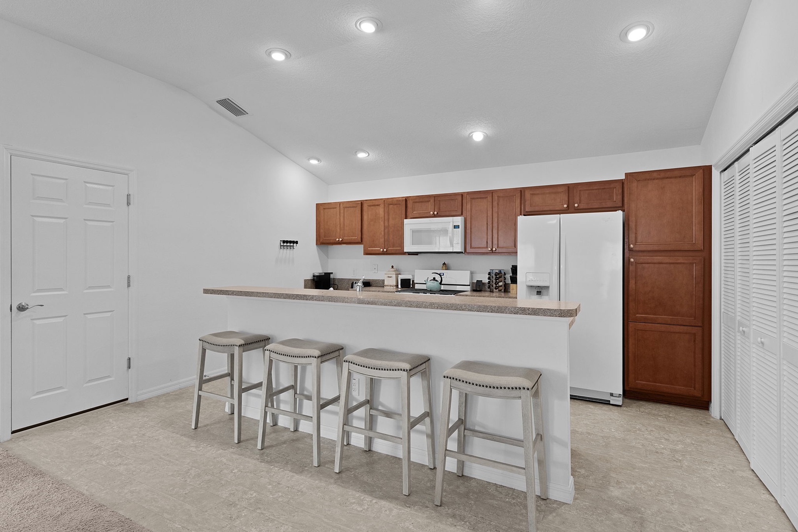 Tile flooring is found in the kitchen and bathrooms, with carpet throughout the remainder of the home for added comfort. The golf cart garage accommodates a rented golf cart, and outside you’ll enjoy cooking and entertaining on the brand-new Blackstone grill—perfect for enjoying Florida living at its best.