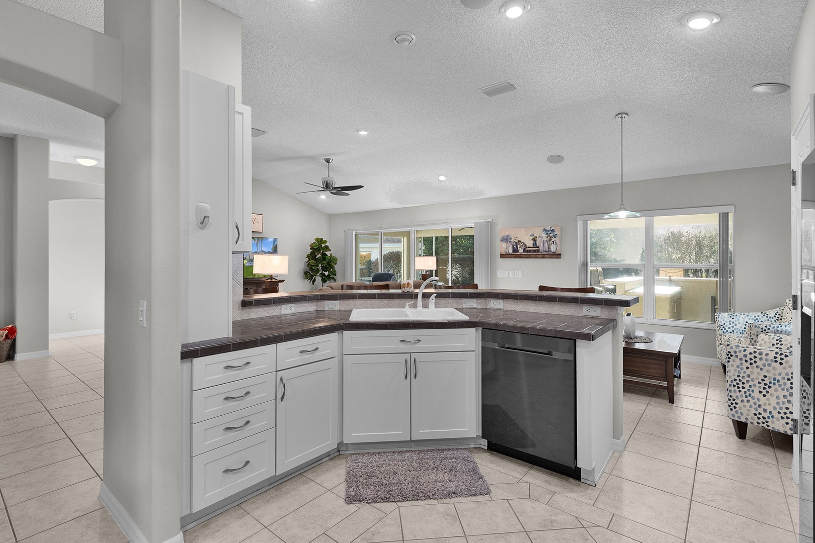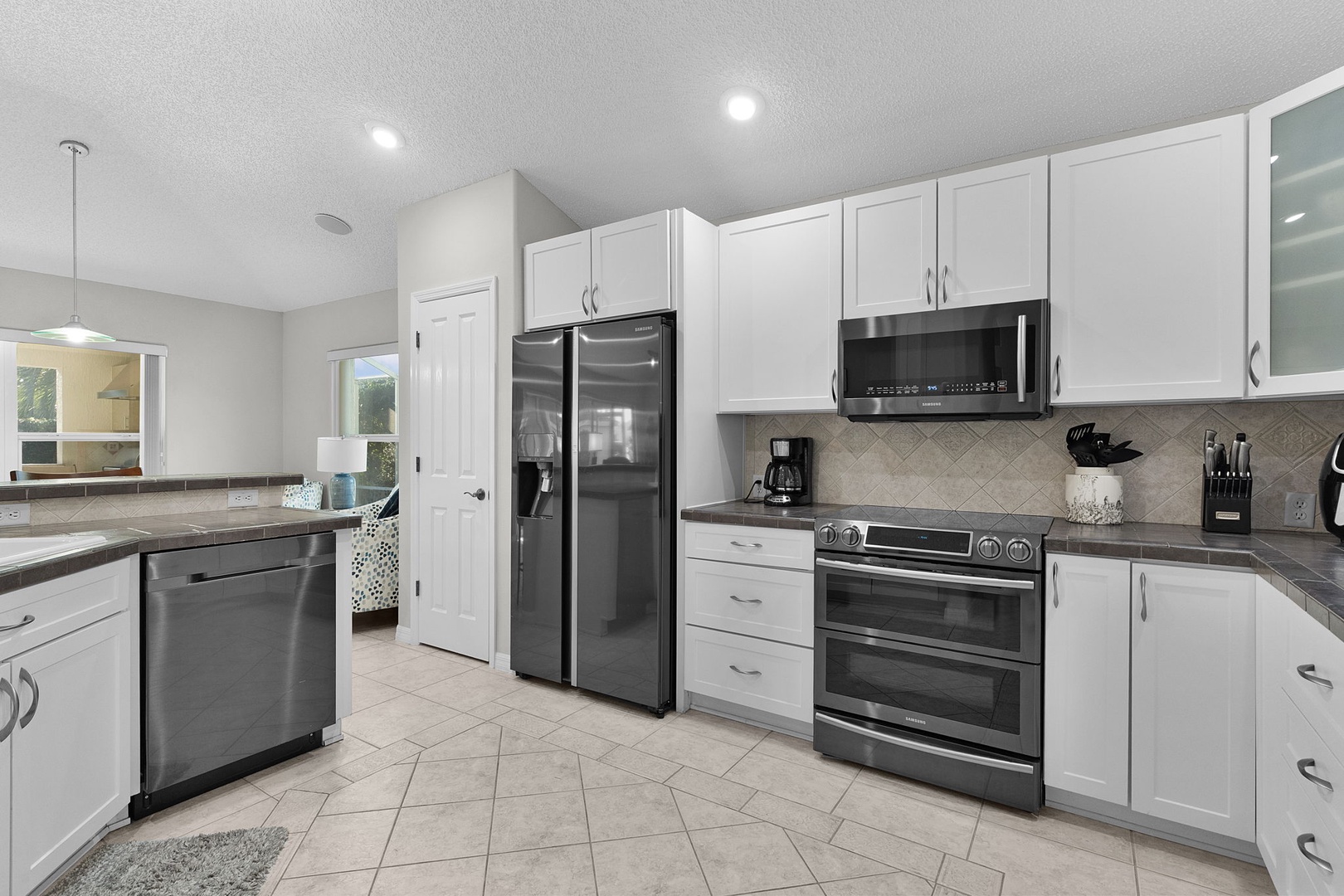 The fully-equipped kitchen is a chef's delight, complete with all the essentials for preparing gourmet meals during your stay. Conveniently located near the laundry room, it ensures easy access to clean up after culinary adventures.