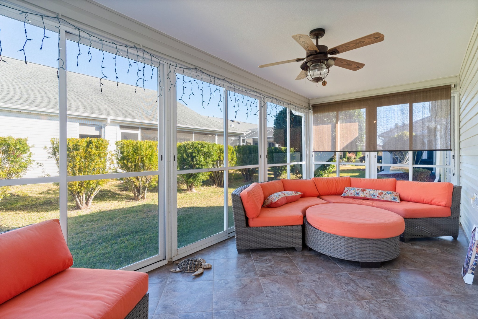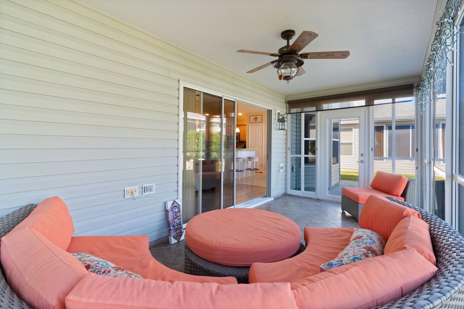 Enjoy the enclosed lanai, complete with ample, comfortable seating, providing a perfect space to relax and unwind year-round.