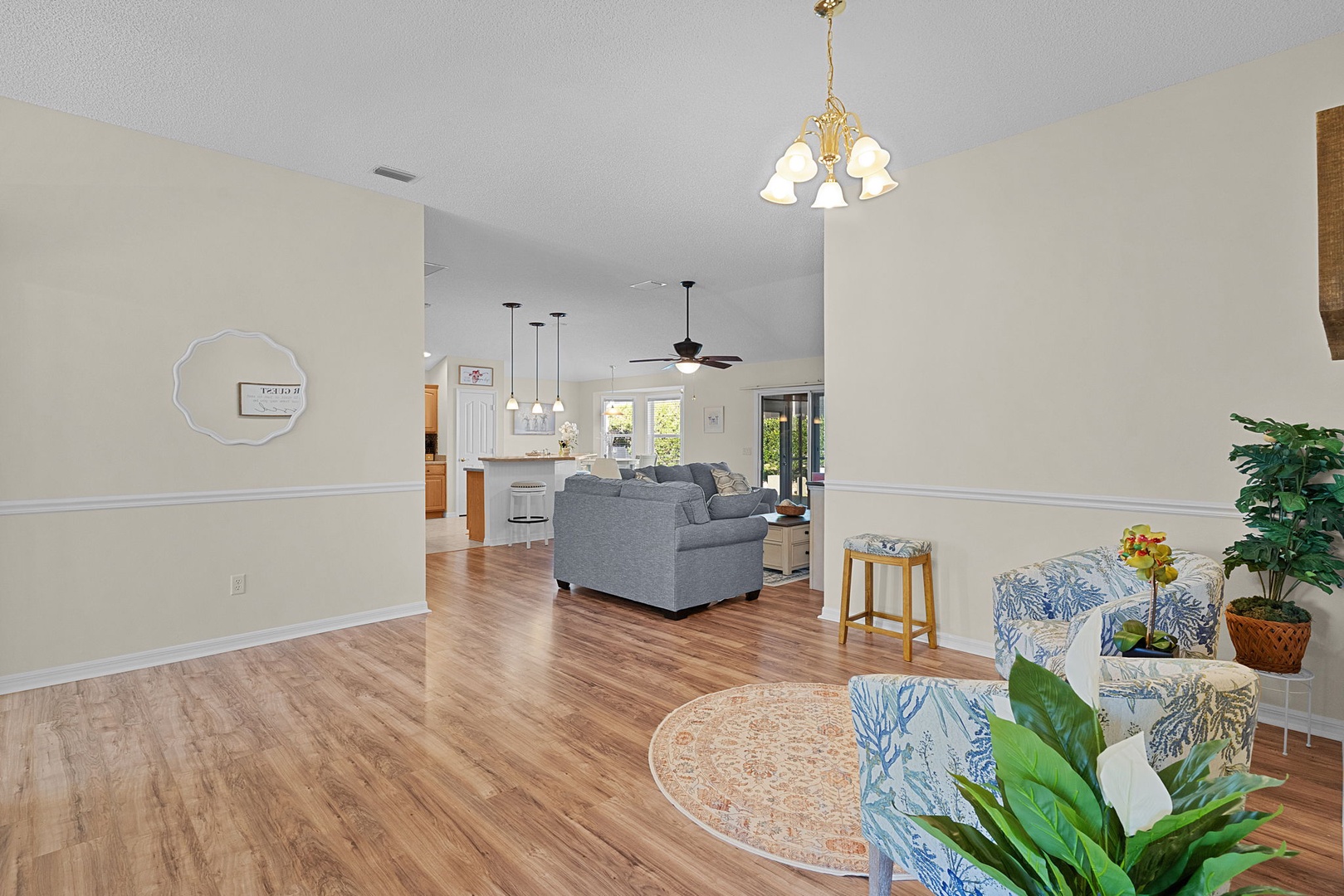 Welcome to this beautifully appointed 3-bedroom, 2-bath designer home located in the desirable Village of Caroline. Thoughtfully designed for comfort and convenience, this home is ideal for seasonal guests or extended stays in The Villages.